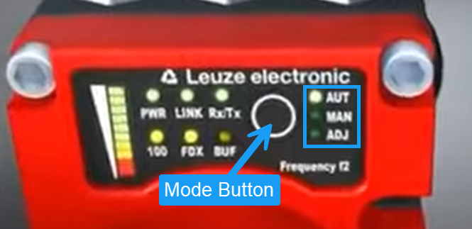 Enter fine-adjust mode (ADJ) by briefly pressing the mode button on each device.